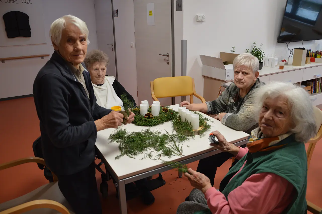 Izdelovanje venčkov je spodbudilo ustvarjalnost, ročne spretnosti in sodelovanje. Stanovalci so z veseljem izbirali zelenje, okraske in sveče ter vsak venček oblikovali po svojem okusu. Nastali so unikatni izdelki, ki bodo v adventnem času krasili skupne prostore.