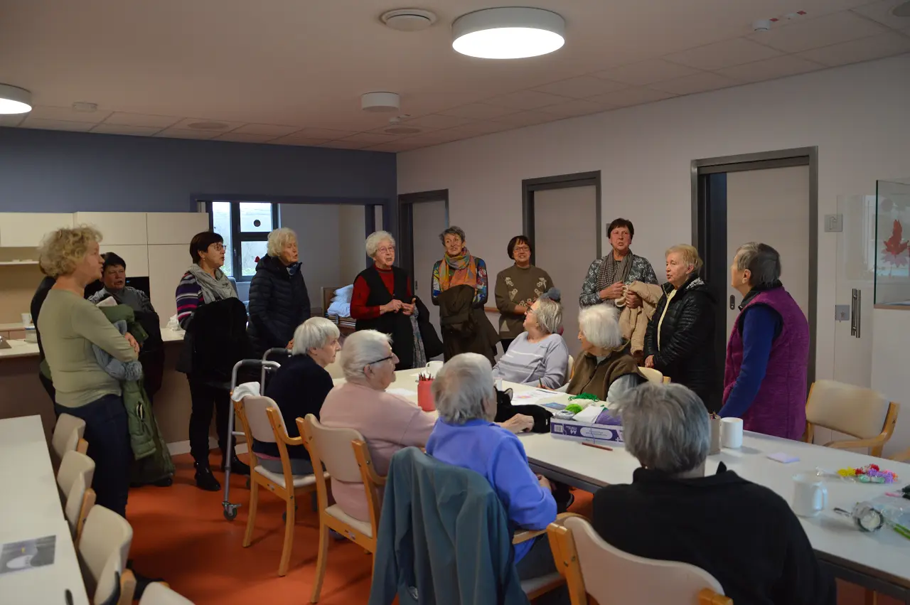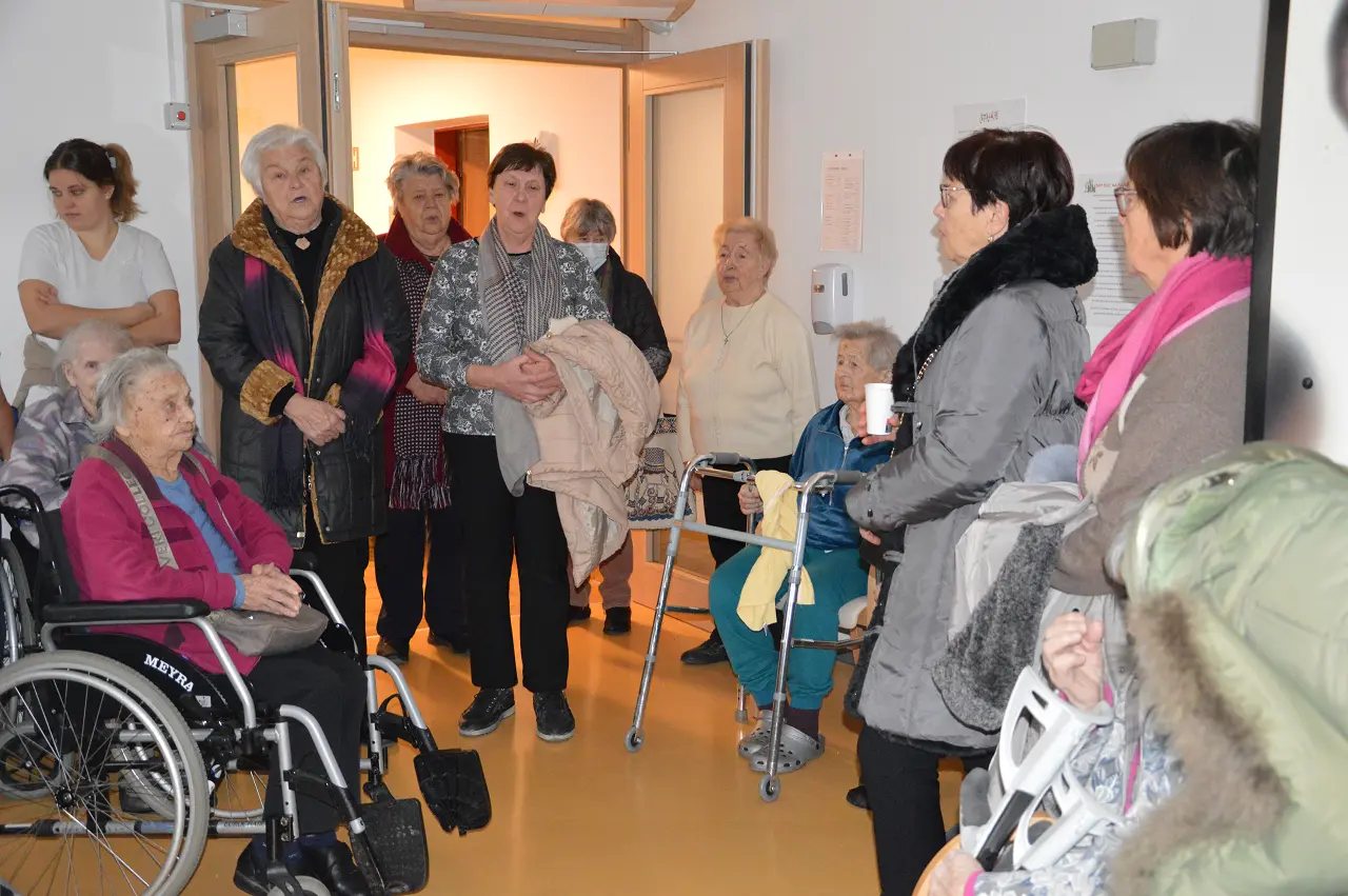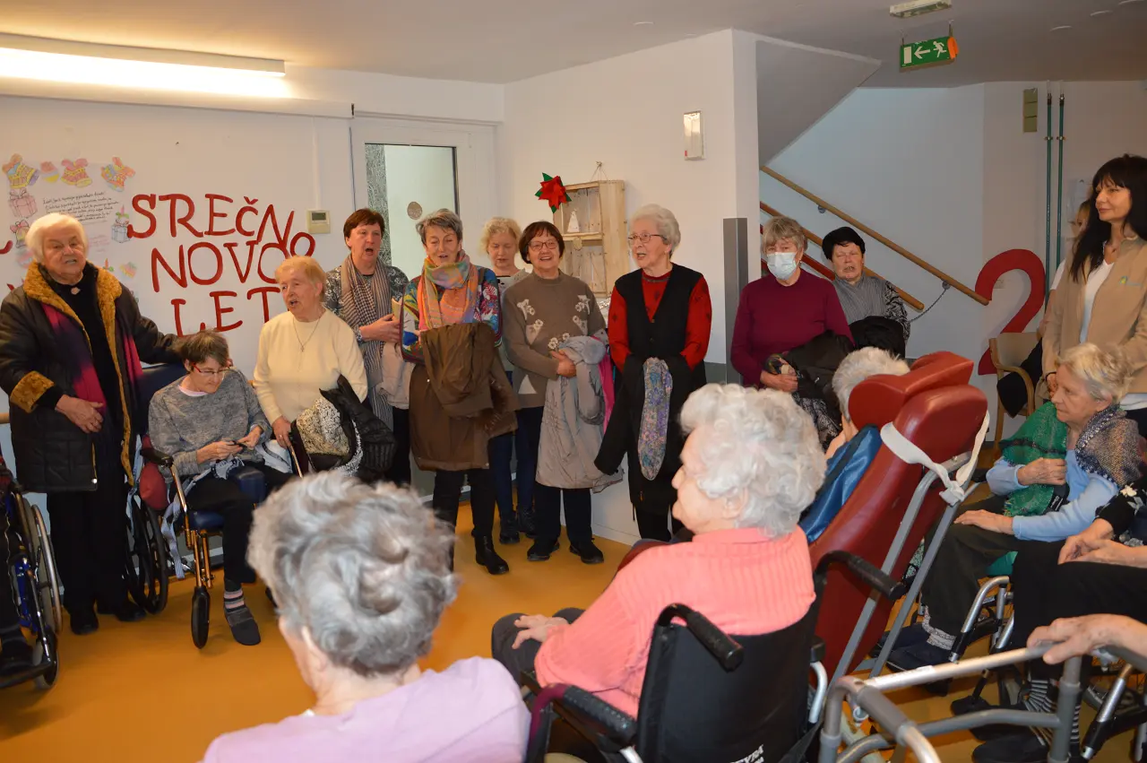 S petjem so pričele v pritličju, ob obeh večjih smrekah in nadaljevale v prvem in drugem nadstropju. S petjem domačih pesmi so zaključile v Dnevnem centru Mavrica. Vsako leto se jih zares razveselimo, saj so tudi nekatere naše stanovalke bile članice te vesele skupine.
