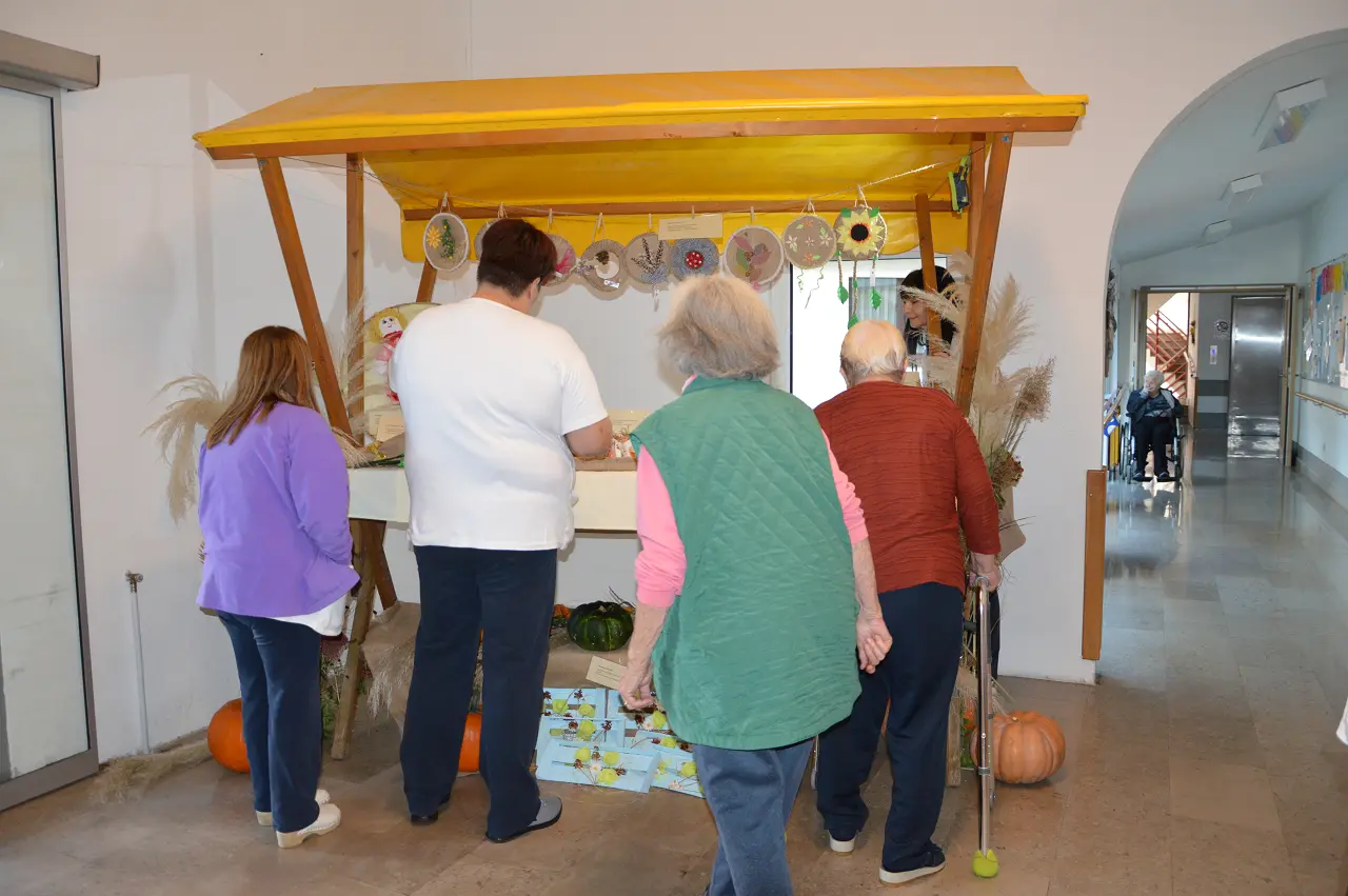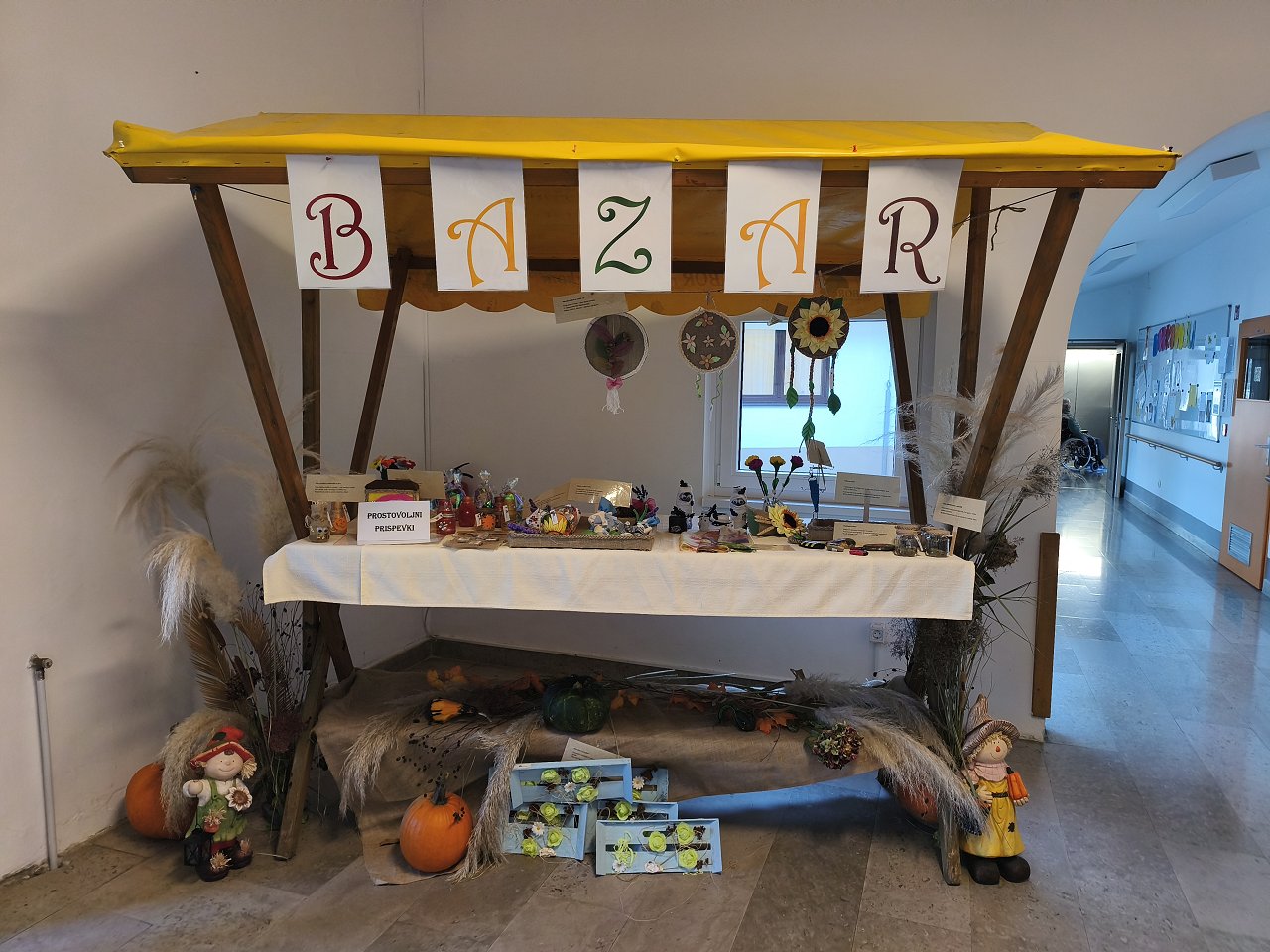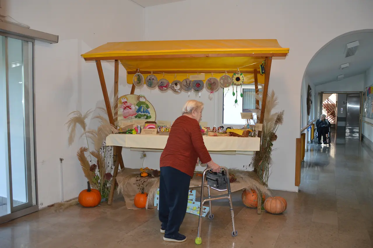 Svetovni dan starejših smo letos obeležili osmega oktobra. V našem domu so priprave potekale že v septembru, ko so pridne in spretne roke stanovalk in stanovalcev izdelovale različne simpatične izdelke za prvi domski bazar, ki smo ga odprli ravno na dan dogodka. Tako smo pekli piškote, jih lično zapakirali, nastajali so različni pleteni in kvačkani izdelki, obeski za ključe, vazice, svečke ... V dnevnem centru Mavrica so pripravili na kupe rožic. Društvo invalidov Dornberk in Društvo upokojencev iz Kanala so nam podarili simpatične punčke iz cunj, ki so šle za med. Za kar smo jim neizmerno hvaležni.