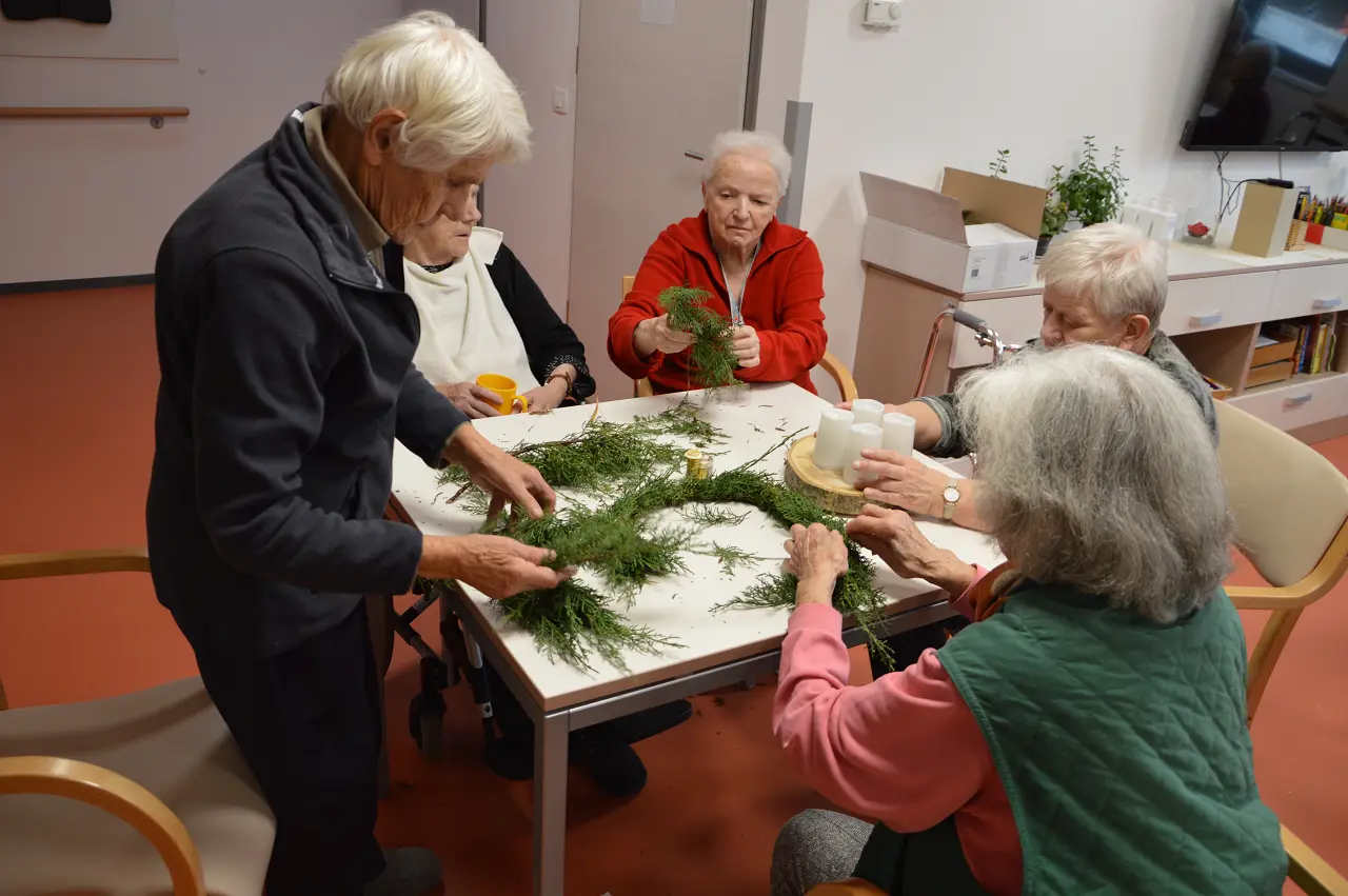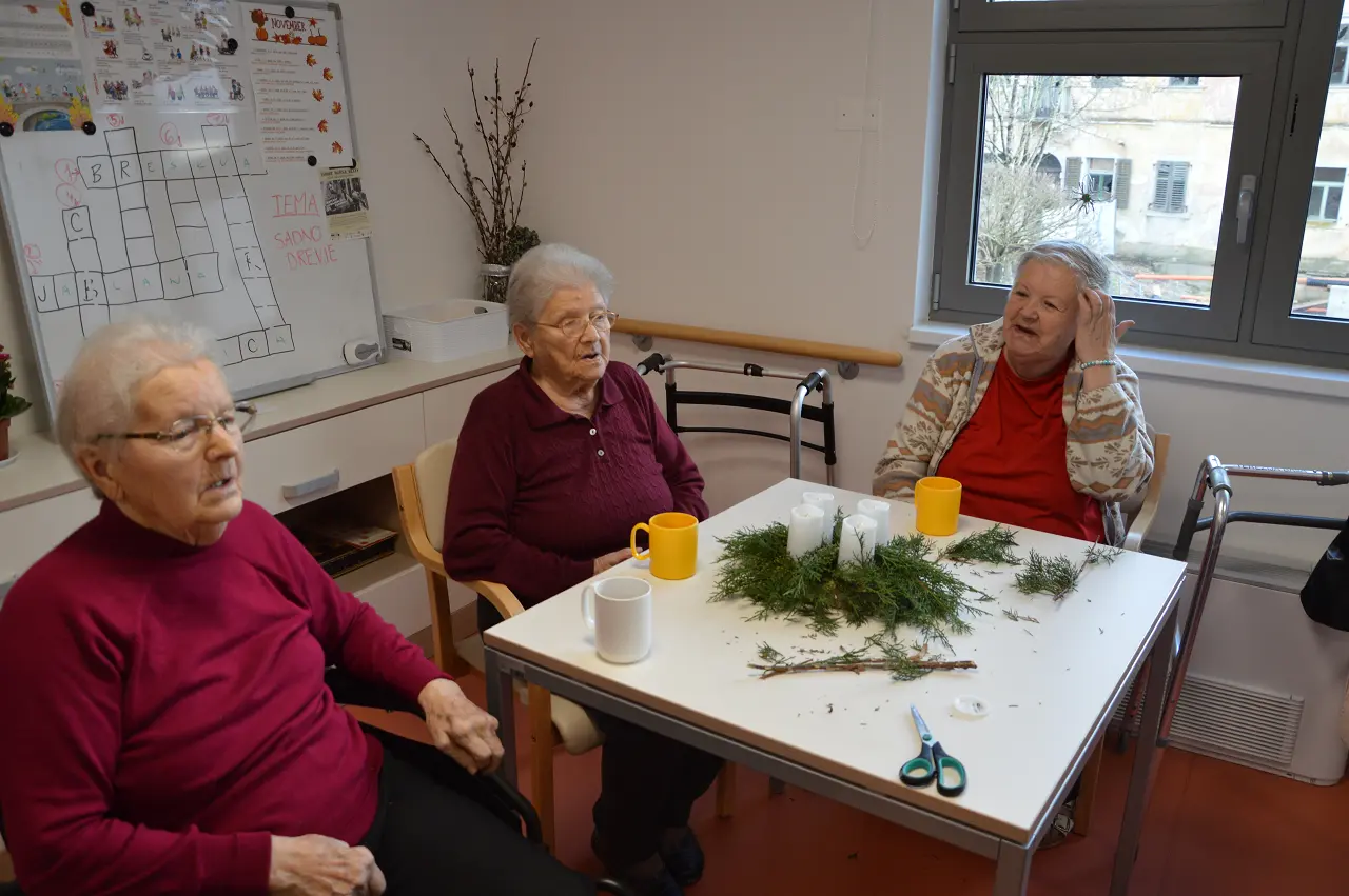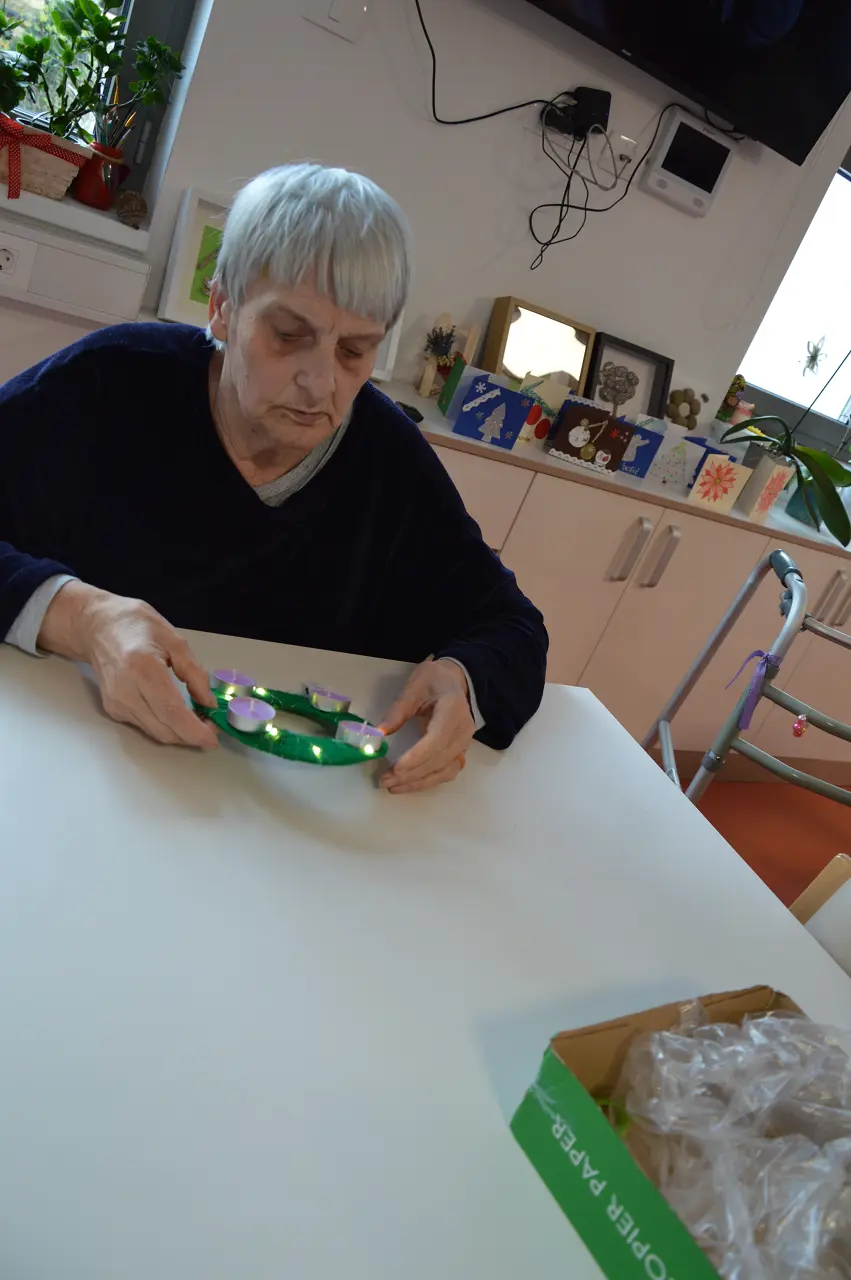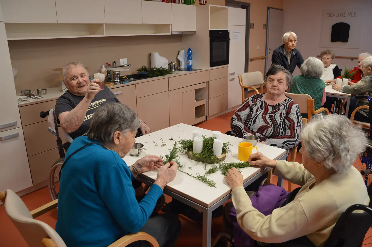 Izdelovanje venčkov je spodbudilo ustvarjalnost, ročne spretnosti in sodelovanje. Stanovalci so z veseljem izbirali zelenje, okraske in sveče ter vsak venček oblikovali po svojem okusu. Nastali so unikatni izdelki, ki bodo v adventnem času krasili skupne prostore.