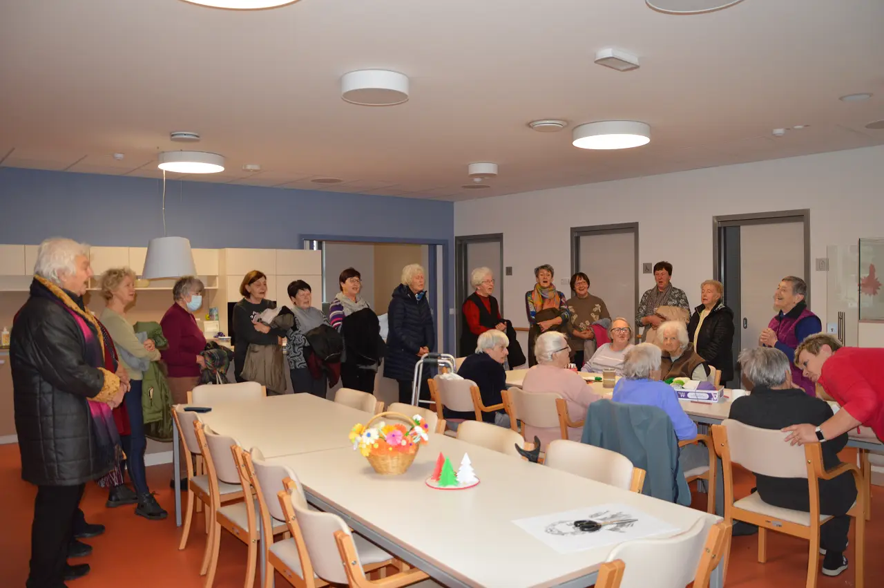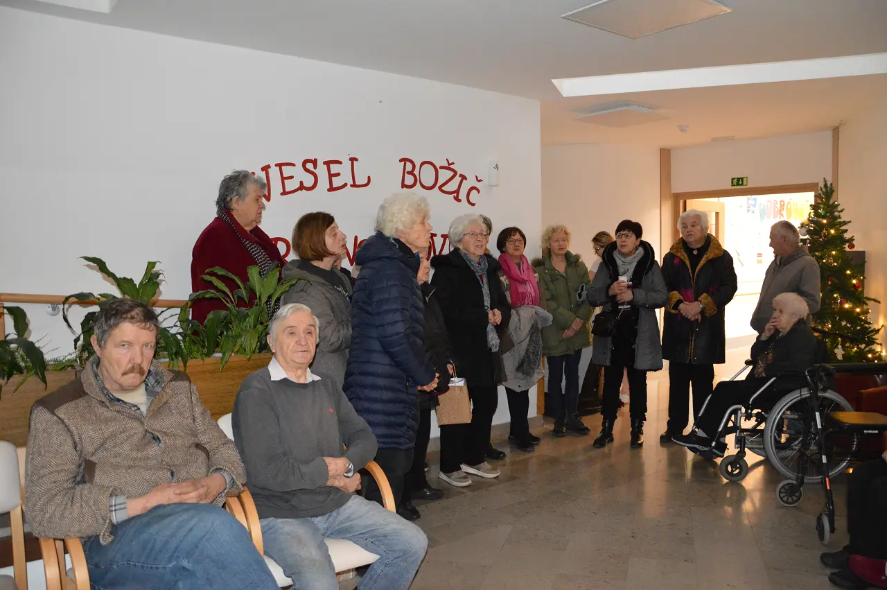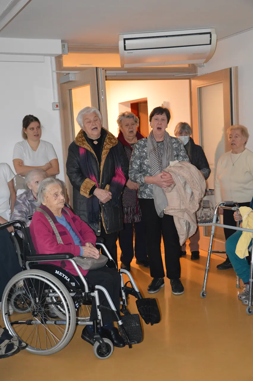 S petjem so pričele v pritličju, ob obeh večjih smrekah in nadaljevale v prvem in drugem nadstropju. S petjem domačih pesmi so zaključile v Dnevnem centru Mavrica. Vsako leto se jih zares razveselimo, saj so tudi nekatere naše stanovalke bile članice te vesele skupine.